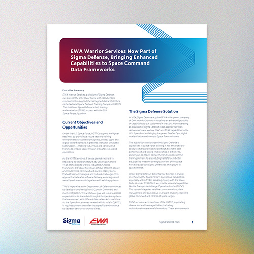 Sigma Defense develops and delivers a broad scope of training resources. These range from electronic warfare, cyber operations, range operations, and radar threat simulation to operational readiness programs for engineering and technical support.