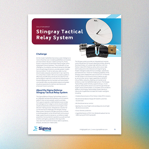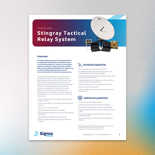 Tactical Edge-to-Command connectivity, the Stingray Tactical Relay System is an integrated hardware and software communications platform that enables faster access to data and intelligence from edge to core to cloud for greater situational awareness and insights and faster decision making.
